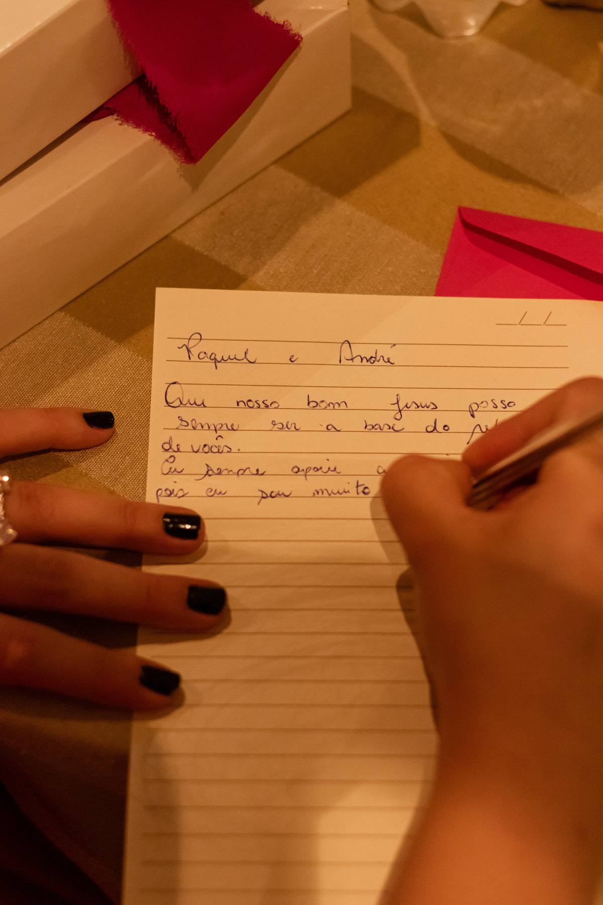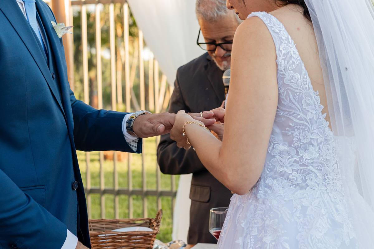 A cerimônia aconteceu sob a luz dourada do fim de tarde. O sol, baixo no horizonte, envolvia tudo com um brilho quase sagrado. Cada gesto era carregado de significado. Mãos entrelaçadas, sorrisos contidos, lágrimas que surgiam sem pedir permissão. O toque de Raquel no rosto de André dizia mais do que qualquer voto: cuidado, presença, amor que acolhe.