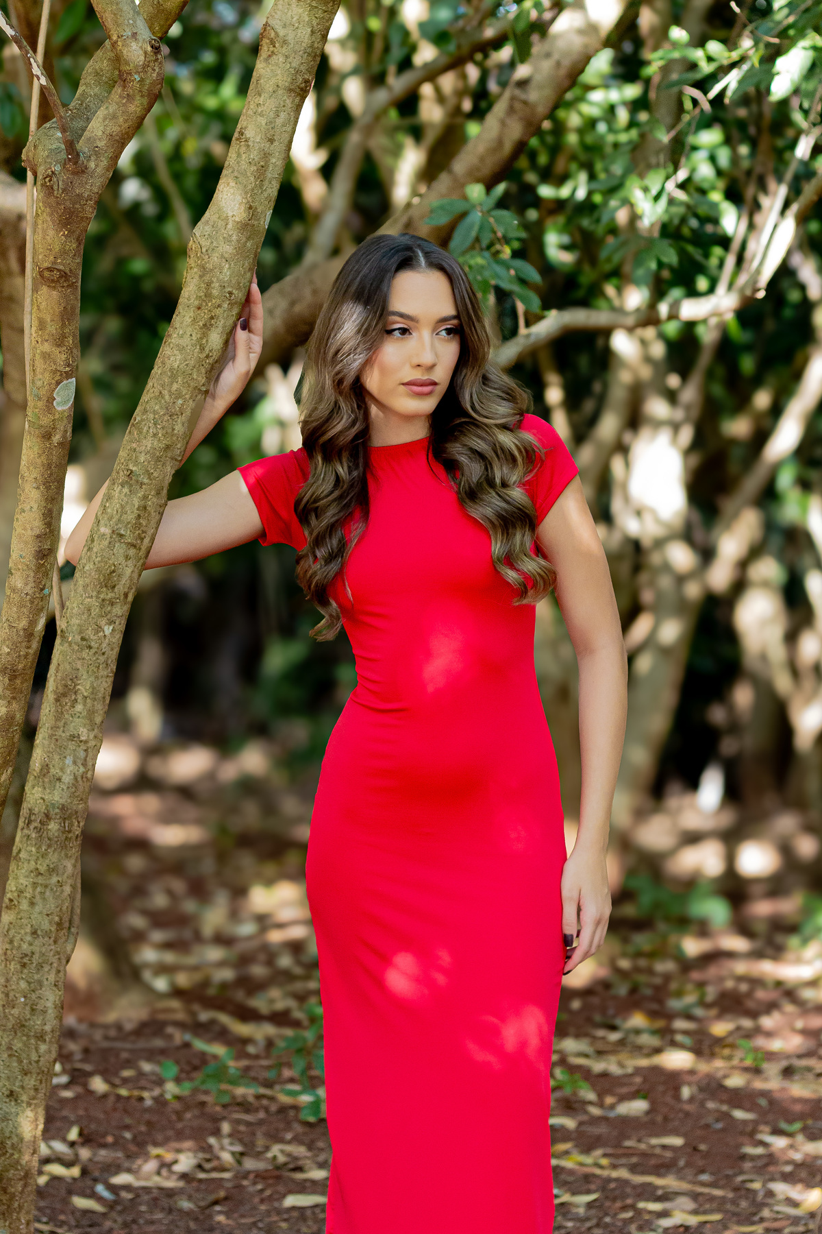 A Ana Laura chegou com um vestido vermelho vibrante, que contrastava de forma impecável com o verde intenso da natureza ao redor. A leveza dela, somada à beleza natural do parque, me inspirou a criar uma série de fotos que misturam elegância, espontaneidade e força feminina. 💃🌿