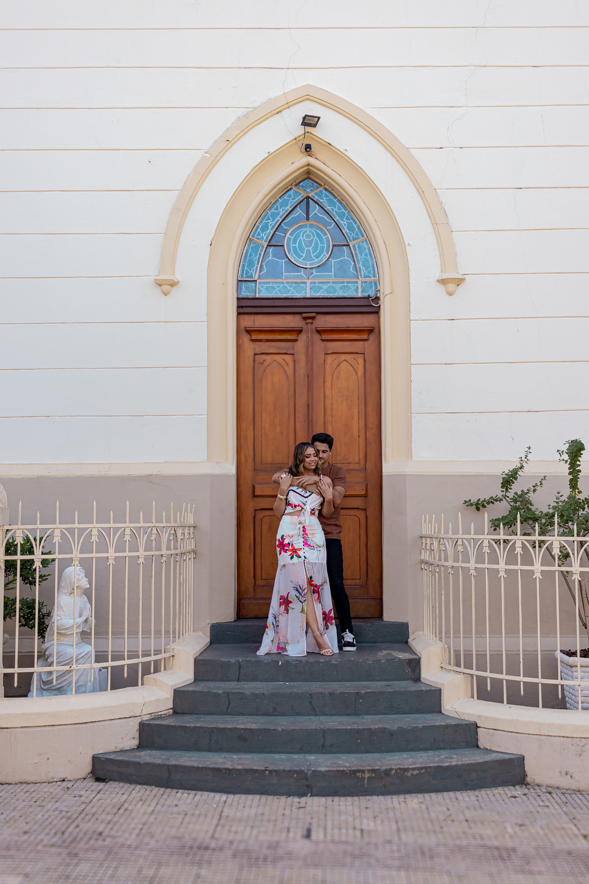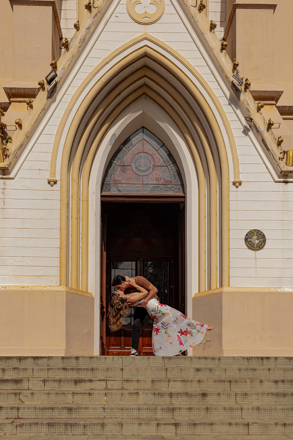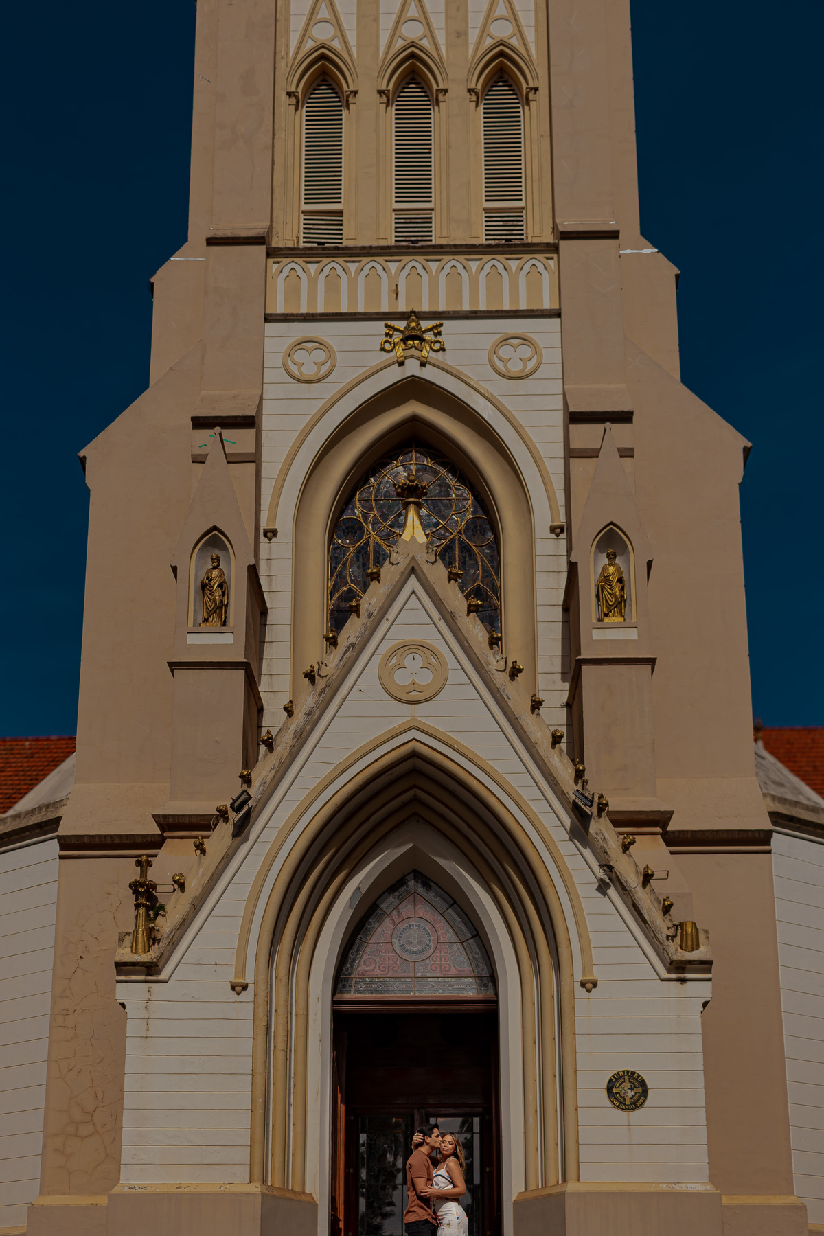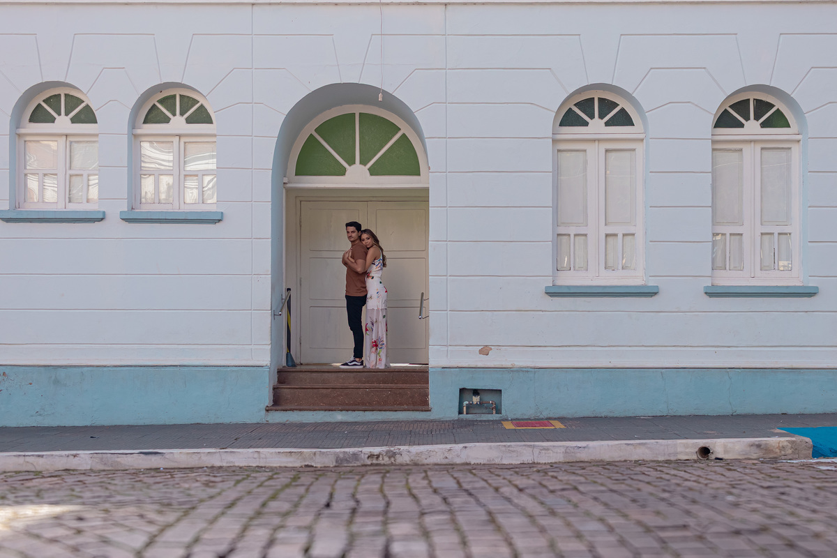 Seguimos até a praça da Matriz — símbolo da cidade e da minha infância. Um lugar onde cada ladrilho carrega história. E naquele espaço, entre o passado e o presente, entre o tradicional e o moderno, registramos o amor real da Sté e do Túlio. Amor de verdade. Amor que se vê nos detalhes.