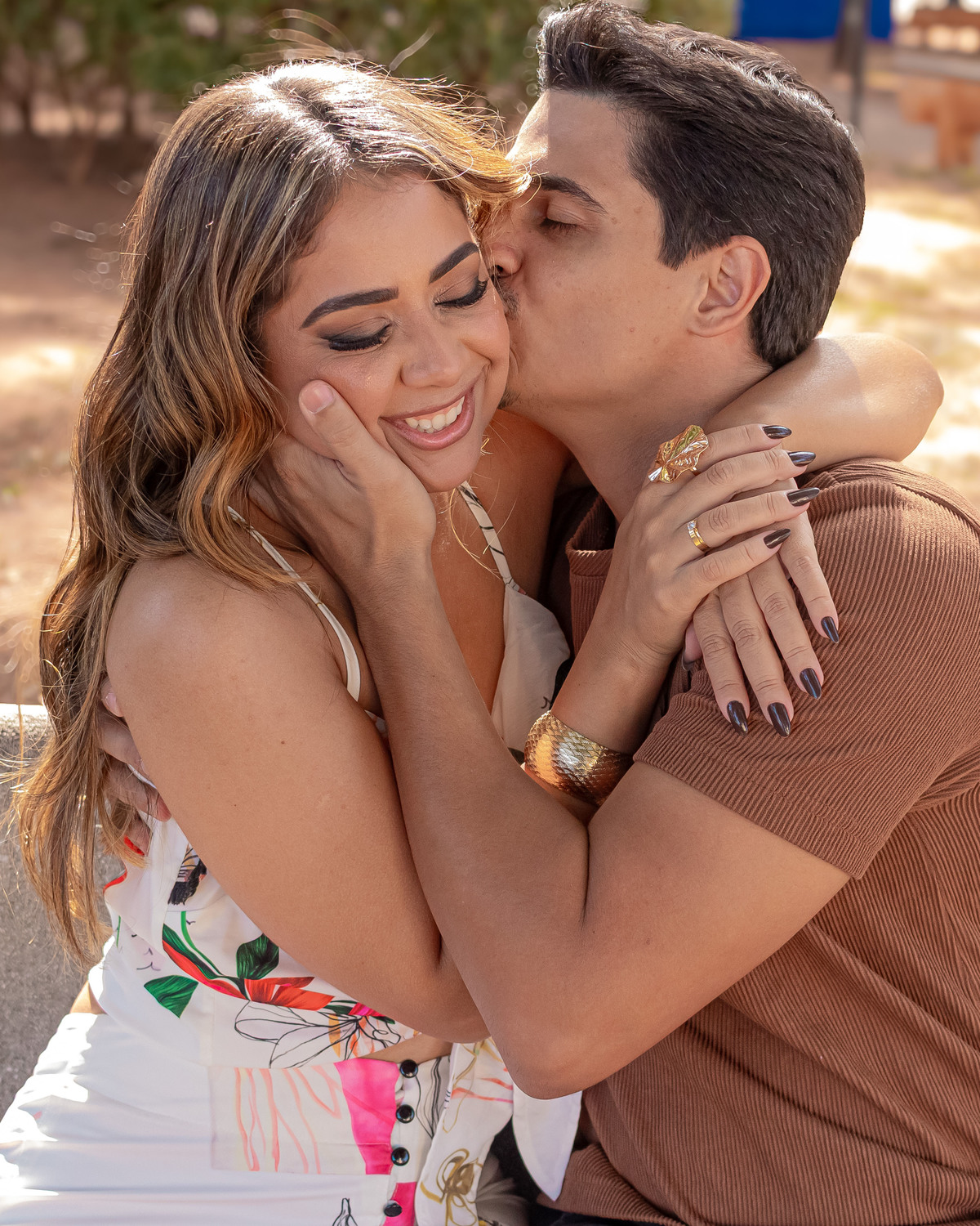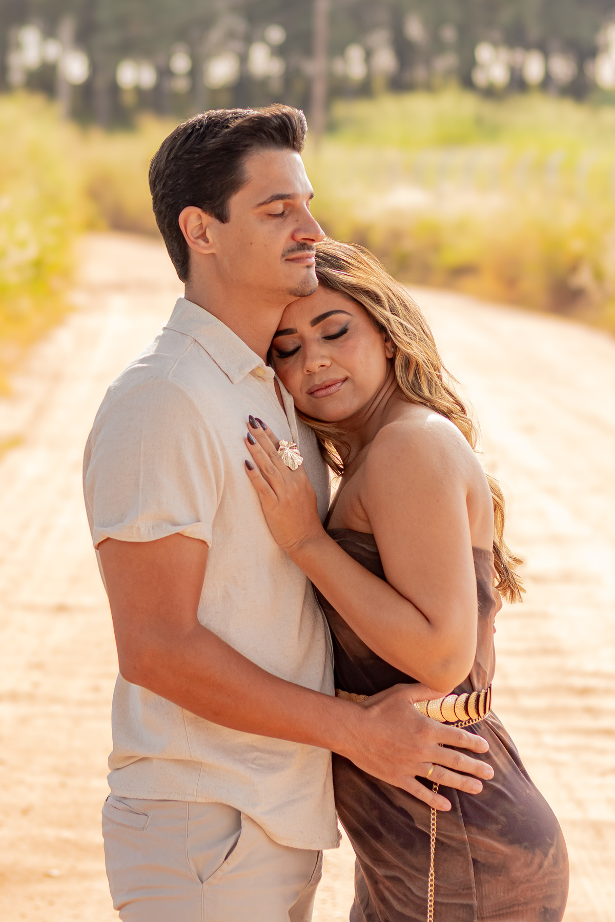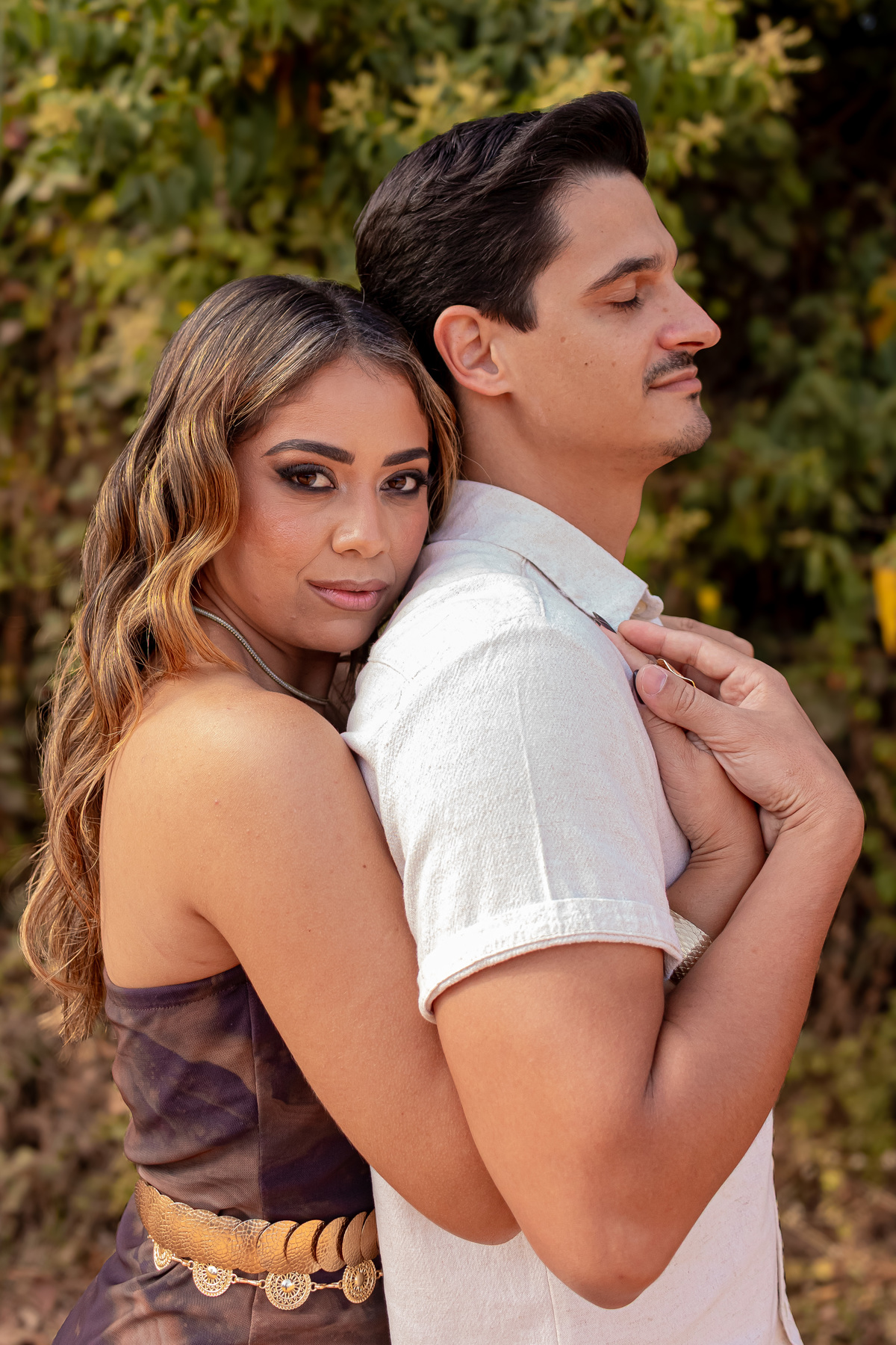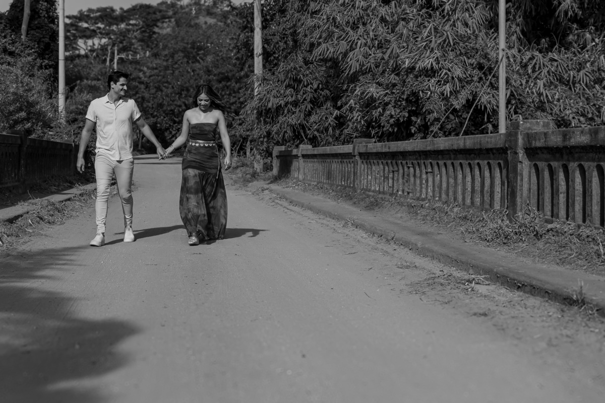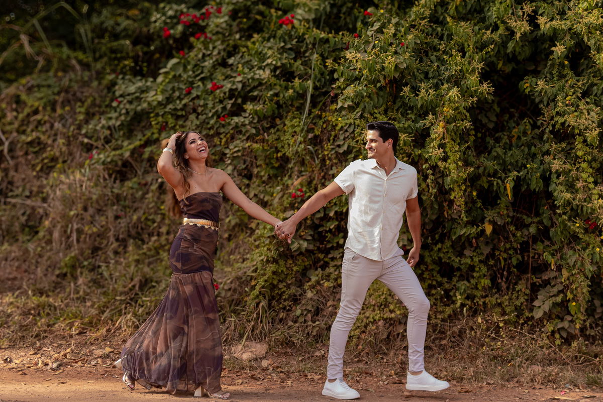 Cada clique era mais do que uma imagem. Era o reflexo de sorrisos que se completam, de olhares que conversam sem palavras, de uma conexão rara. Caminhamos entre árvores cobertas de orvalho, sentimos o cheiro da terra molhada, e entre uma risada e outra, tudo fluía com naturalidade. Não era só um ensaio. Era uma manhã vivida intensamente.